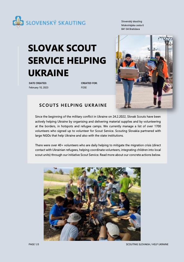 Slovak Scouting is actively involved in assisting Ukrainian citizens through the Scout Service initiative, which aims to assist in various emergencies and crisis situations. Main goal of this project is to achieve effective inclusion of Ukrainian children and youth in our ranks with the help of experts. We want to ensure the conditions for inclusion so that children can get to know each other, feel welcome and slowly erase the language barrier.