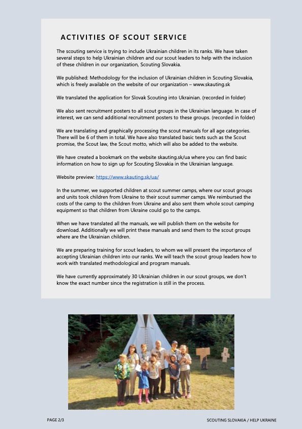 With proper inclusion, we must first familiarize our current members and prepare them for this process, therefore we will distribute posters and methodologies to the scout groups all around Slovakia. We will include supplements intended for Ukrainian members in the magazines that Slovak Scouting offers and create short guidlines what is scouting about in Ukrainian language.